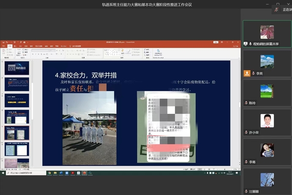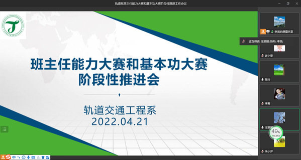 为了进一步做好2022年班主任能力大赛和基本功大赛的参赛工作,全面提升班主任综合素养,轨道交通工程系于4月21日在线上召开了备赛工作推进会。学校学工处处长汪丽丽、轨道交通工程系主任李蒋出席会议,轨道交通工程系主任助理许小荣及相关班主任参加了会议。会议由轨道交通工程系副主任李英主持。