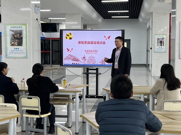 为深入落实“立德树人”根本任务,为国家培养德才兼备的时代新人,11月25日,轨道交通工程系在轨道楼一楼大厅开展了课程思政建设培训,轨道交通工程系全体教师参加了培训,培训会由轨道交通工程系李蒋主任主持。