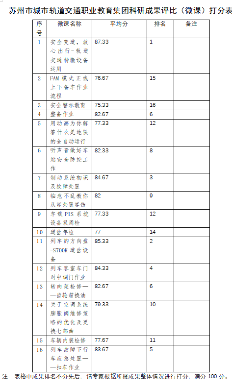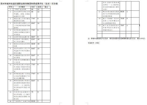 此次科研成果评选活动经前期积极组织动员,集团单位成员员工或教师自主申报、集团联合资格审核、集团组织专家评审,共从申报的45项科研成果项目中评选出2022年度符合奖励条件的优秀科研成果项目41项。其中,《城轨交通人才培训基地建设研究与实践》等论文19篇;《车门自动化控制实验平台研究设计》等课题或专利9项;《安全变道,放心出行-轨道交通转辙设备运用》等微课16个。集团特邀苏州大学姚林泉教授、张奕驰教授、黄启兵教授担任评审委员会专家,经专家评审,获奖成果共计28项,其中一等奖5项,二等奖9项,三等奖14项。