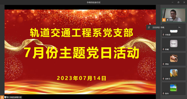 7月14日上午,轨道交通工程系党支部采用企业微信线上会议的形式开展了7月份主题党日活动。活动由支部副书记李蒋主持,轨道交通工程系党支部共15人参加。