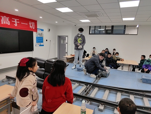 2023年12月10日下午,狮山横塘街道横塘社区的“四点半学校”师生一行近40人,来到我校轨道交通职业体验中心,开展了一系列精彩的职业体验活动,轨道交通工程学院缪旭老师及2名学生志愿者负责此次职业体验工作。