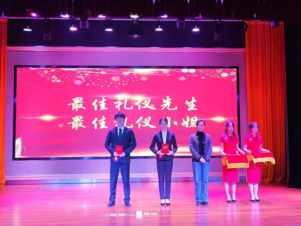 本次比赛评选出一名最佳礼仪小姐,一名最佳礼仪先生,团体一等奖一组,团体二等奖三组,团体三等奖四组: