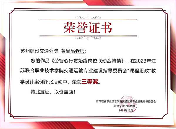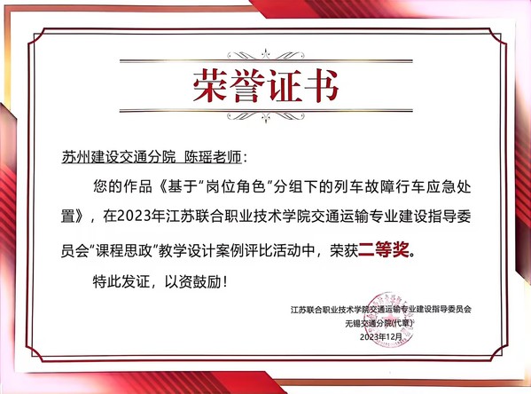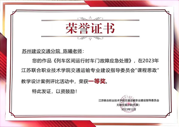 此次专指委“课程思政”教学设计案例评比活动共评出一等奖3名、二等奖7名、三等奖10名。我院陈曦老师《列车区间运行时车门故障应急处理》斩获一等奖,陈瑶老师《基于“岗位角色”分组下的列车故障行车应急处理》、孔祥睿老师《严禁对标稳停车,确保安全再启程》、邢倩荷老师《自动检票机卡票作业处理》、吴璇老师《精通客伤急救,谨记生命至上》4个作品获得二等奖,黄晶晶老师《劳智心行贯始终岗位联动战特情》获得三等奖。