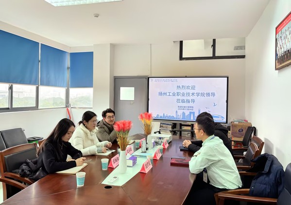 2026年1月6日,扬州工业职业技术学院交通工程学院城轨教研室主任沈彦池、副主任吴金龙、教师张婉如一行三人莅临轨道交通工程学院开展交流学习活动。学院李蒋院长、城市轨道交通运营管理教研室主任沈玲宏老师、学工办宋皓晨老师热情接待并参与交流。