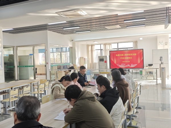 1月14日下午,轨道交通工程学院党支部在轨道实训楼一楼大厅开展了1月份主题党日活动。活动由支部书记李蒋同志主持,轨道交通工程学院党支部全体党员参加。