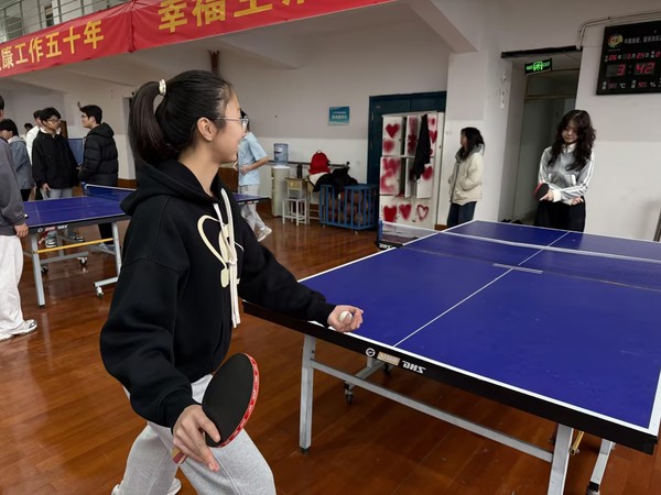 赛场上,选手们沉着专注、灵活移动,推挡、弧圈、扣杀等精彩场面频现。小小的乒乓球在台上来回飞驰,正如学院所倡导的育人理念——在轨道般的严谨赛道上,以厚德为根基;在每一次挥拍与奔跑中,如骏马般轻捷驰骋、奋力向前。